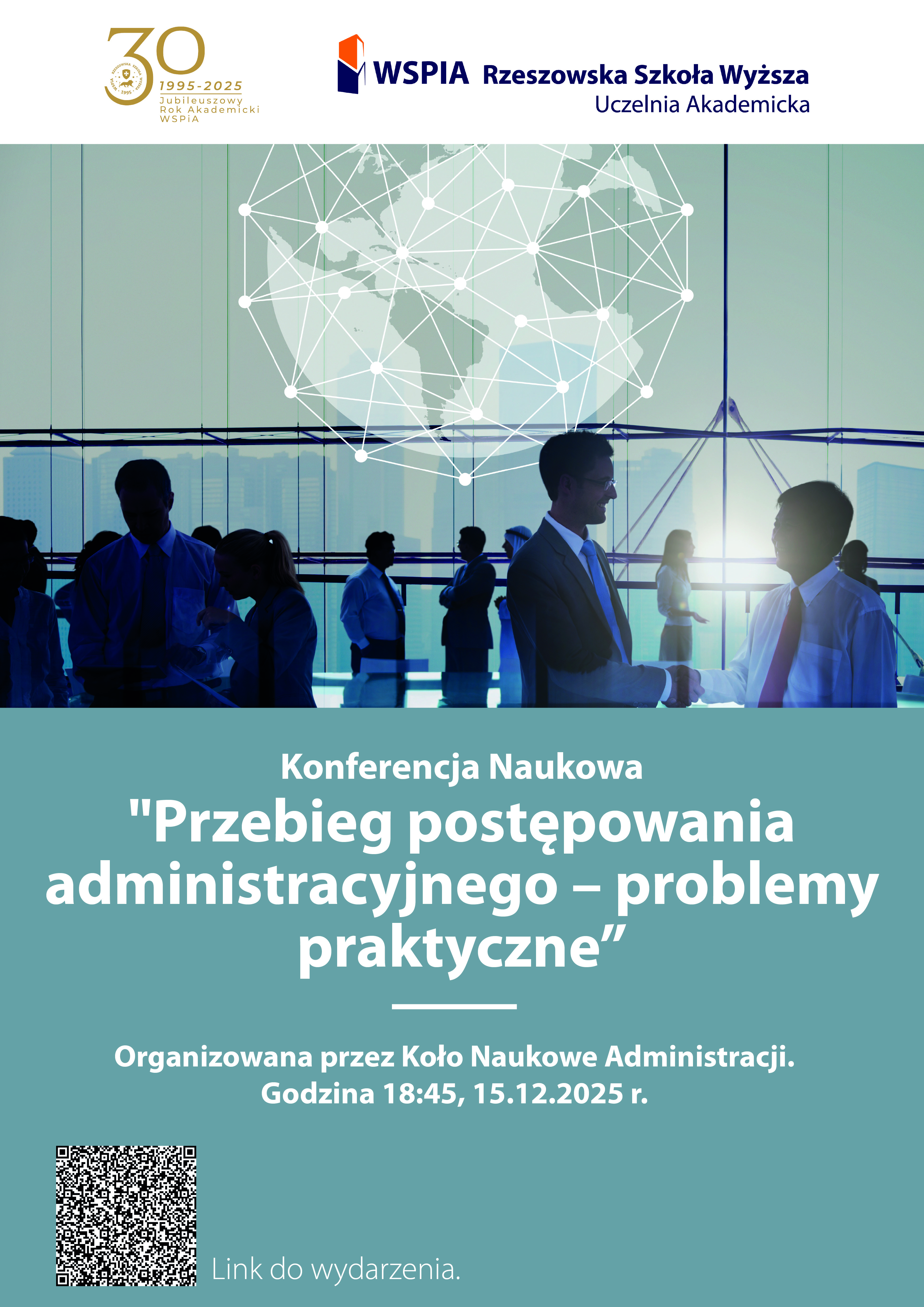 Konferencja Naukowa"Przebieg postępowania administracyjnego – problemy praktyczne”, organizowana przez Koło Naukowe Administracji. Godzina 18:45, forma online. Link: Konferencja Naukowa"Przebieg postępowania administracyjnego – problemy praktyczne” | Dołączanie do spotkania | Microsoft Teams