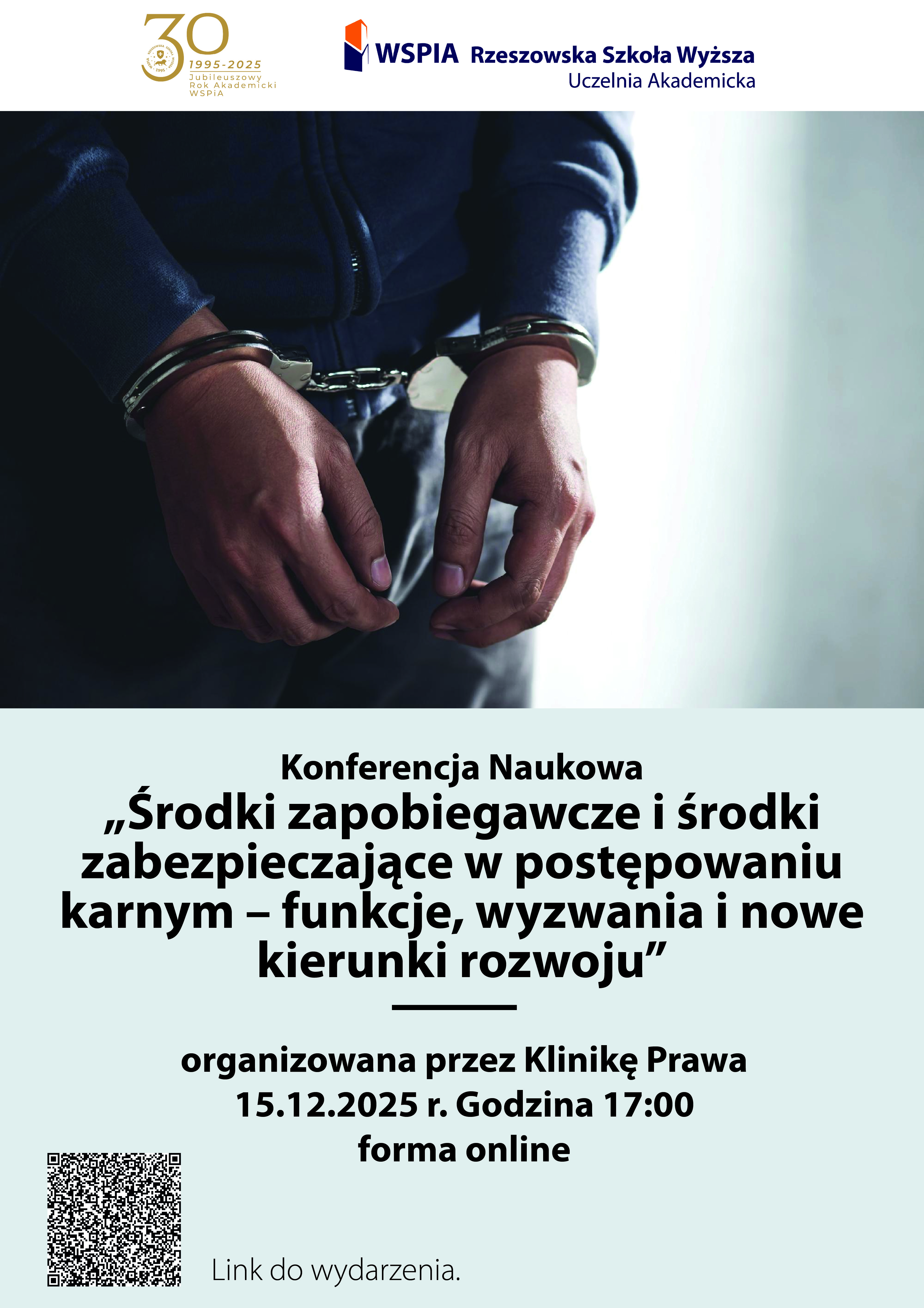 Konferencja Naukowa"„Środki zapobiegawcze i środki zabezpieczające w postępowaniu karnym – funkcje, wyzwania i nowe kierunki rozwoju”, organizowana przez Klinikę Prawa. Godzina 17:00, forma online. Link: Konferencja Naukowa"„Środki zapobiegawcze i środki zabezpieczające w postępowaniu karnym – funkcje, wyzwania i nowe kierunki rozwoju” | Dołączanie do spotkania | Microsoft Teams