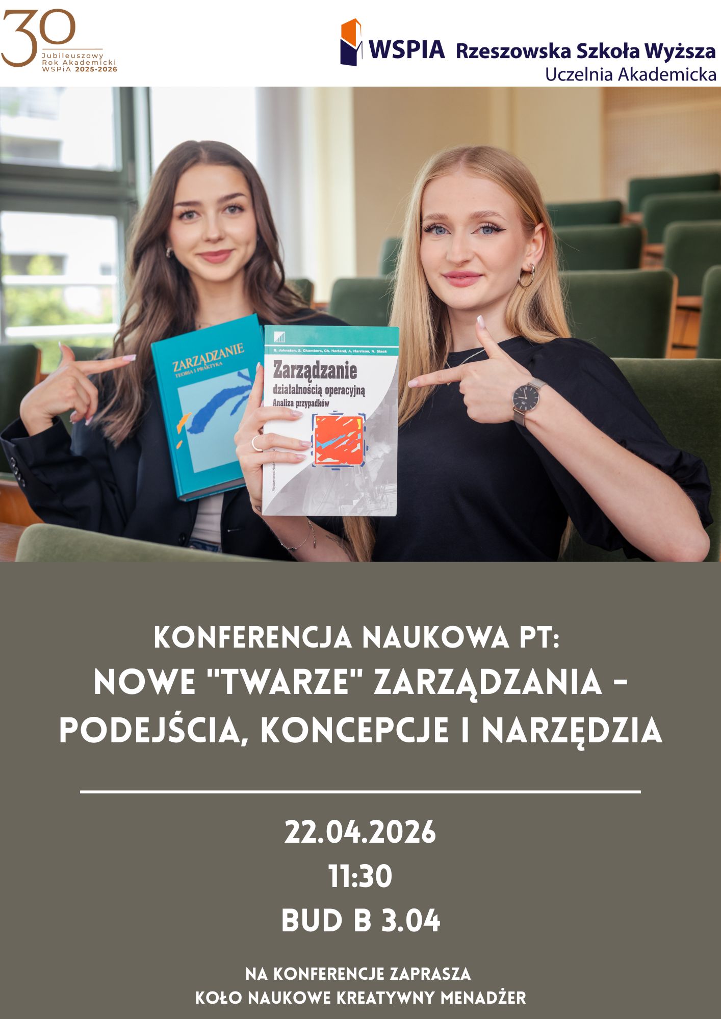 22 kwietnia odbędzie się Konferencja Naukowa pt: Nowe "twarze" zarządzania - podejścia, koncepcje i narzędzia, organizowana przez Koło Naukowe Kreatywny Menadżer. Sala 3.04. bud. B., godzina 11:30