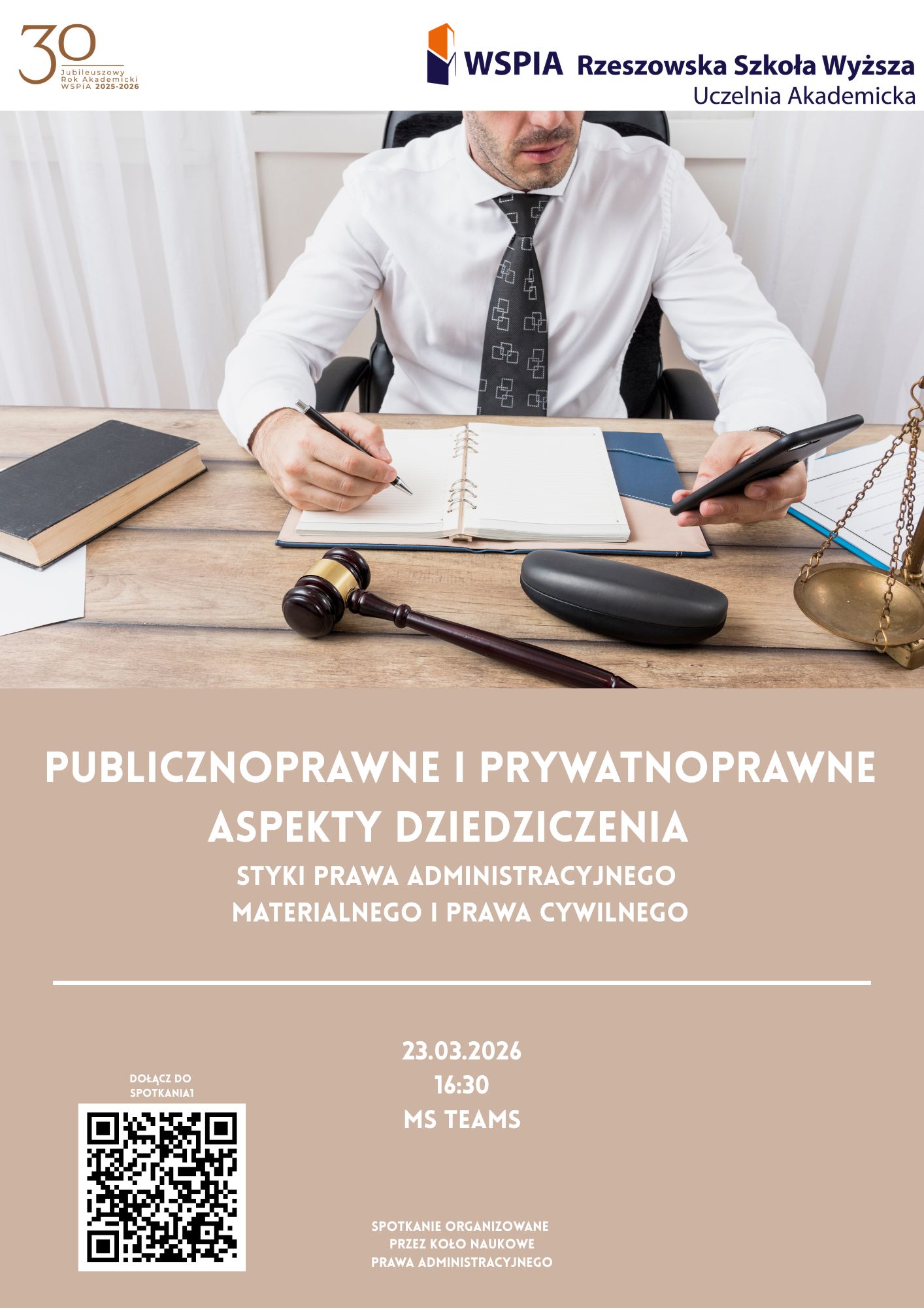 - 16:30 - Konferencja Naukowa „Publicznoprawne i prywatnoprawne aspekty dziedziczenia – styki prawa administracyjnego materialnego i prawa cywilnego”, organizowana przez Koło Naukowe Prawa Administracyjnego. Forma online.
