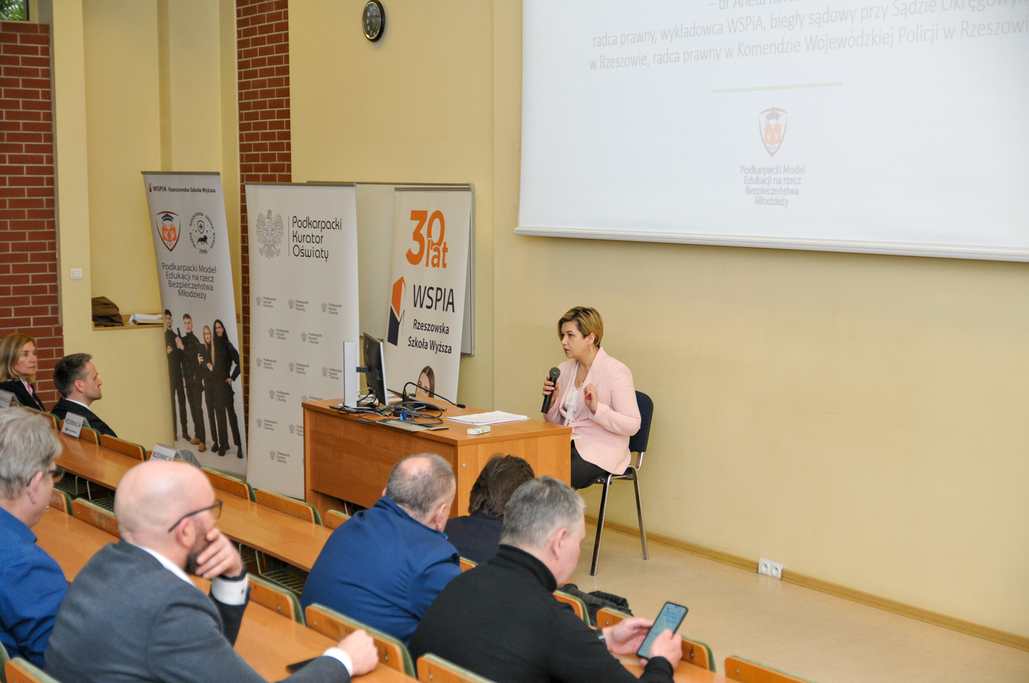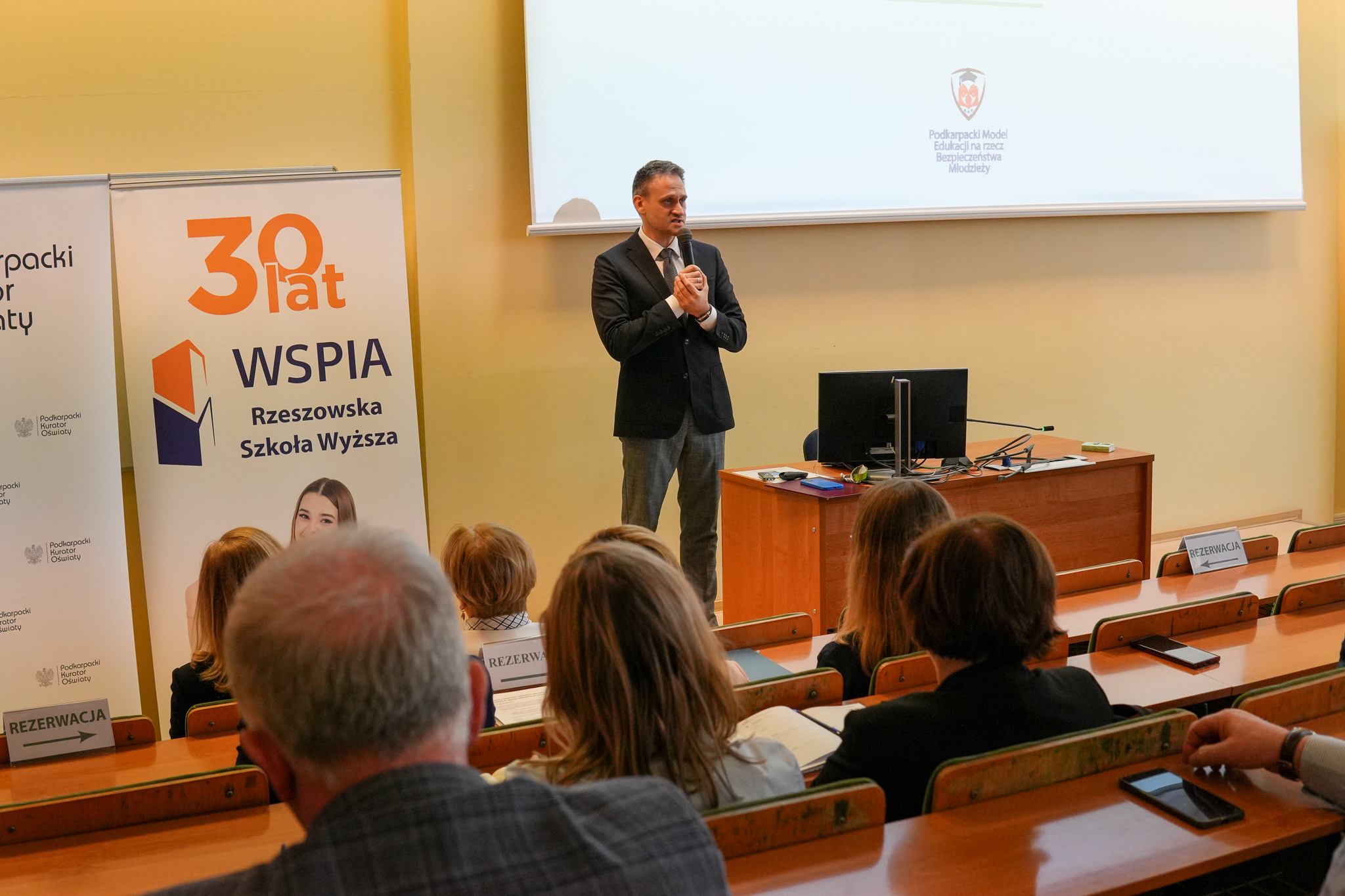 Szkolenie w WSPiA było kolejnym etapem działań związanych z budowaniem systemowego podejścia do edukacji na rzecz bezpieczeństwa w szkołach województwa podkarpackiego realizowanego przez WSPiA Rzeszowską Szkołę Wyższą oraz Podkarpackie Kuratorium Oświaty pod patronatem Wojewody Podkarpackiego.