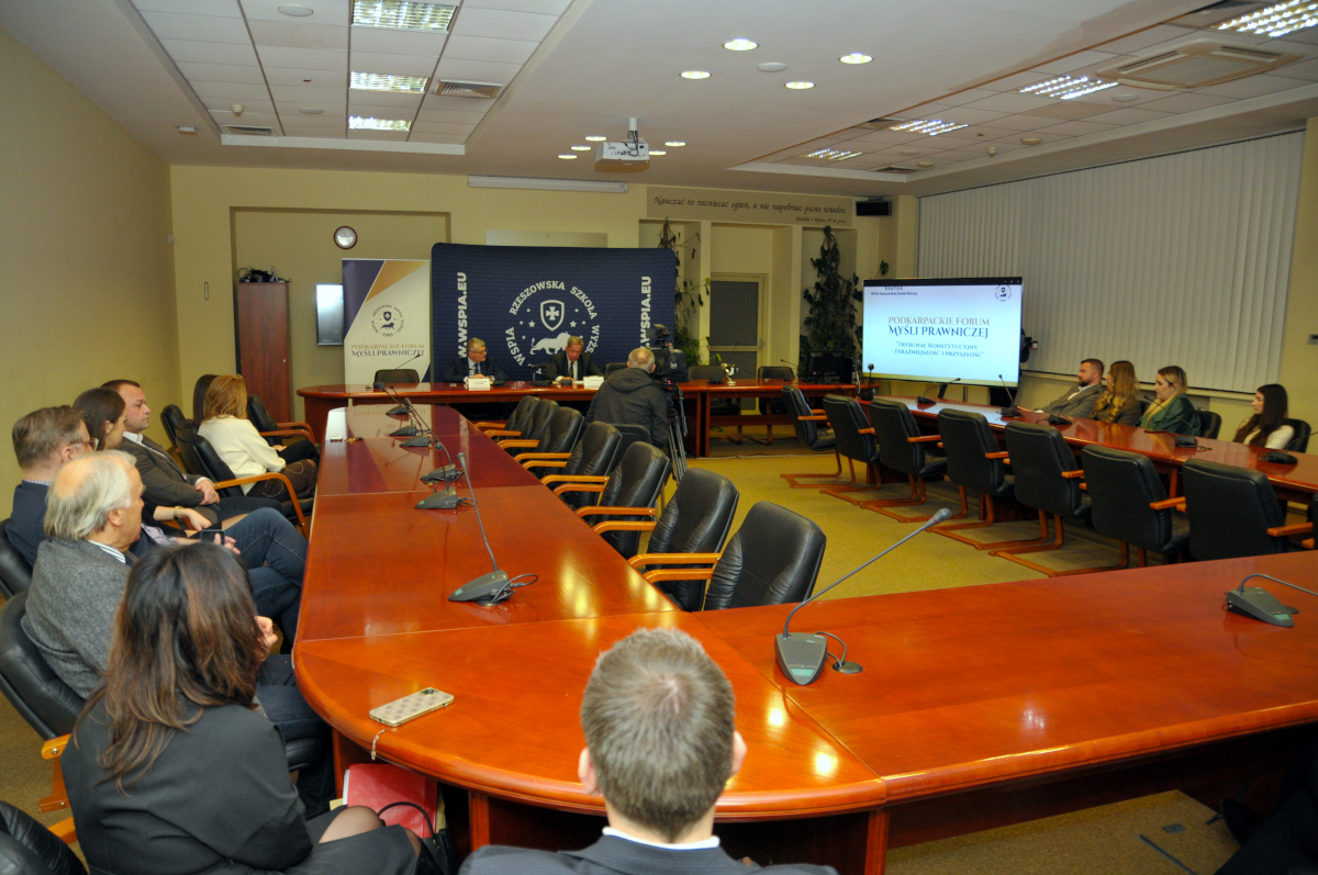 Podkarpackie Forum Myśli Prawniczej powstało z inicjatywy prof. Jerzego Posłusznego, Rektora WSPiA Rzeszowskiej Szkoły Wyższej. Jego posiedzenia odbywają się raz w miesiącu i poświęcone są przede wszystkim podejmowaniu, a także omawianiu aktualnych zagadnień dotyczących stanowienia oraz stosowania prawa. Zgodnie z dotychczasową tradycją w posiedzeniach Forum uczestniczą wybitni przedstawiciele polskiej nauki prawa z różnych ośrodków akademickich, osoby reprezentujące sądownictwo, prokuraturę i korporacje prawnicze, a także nauczyciele akademiccy i doktoranci WSPiA.