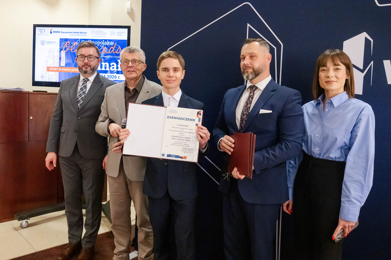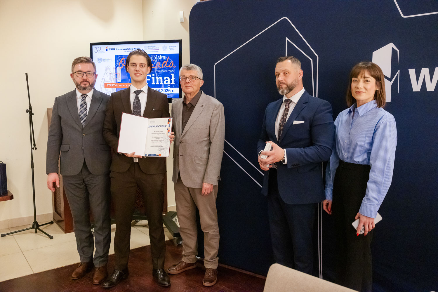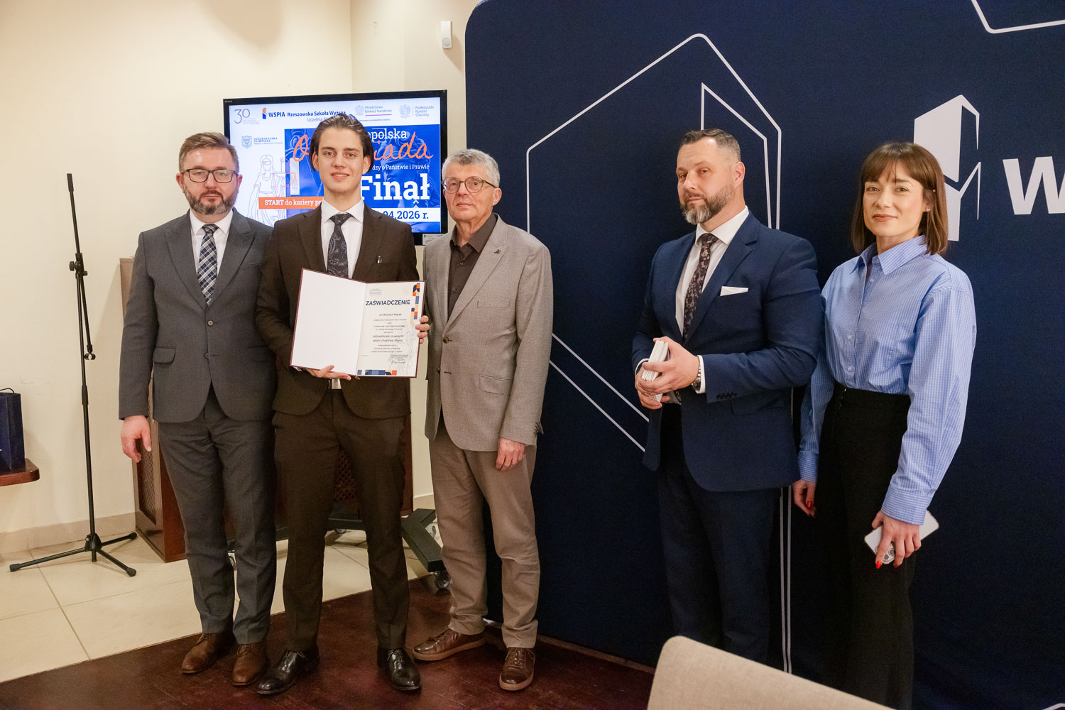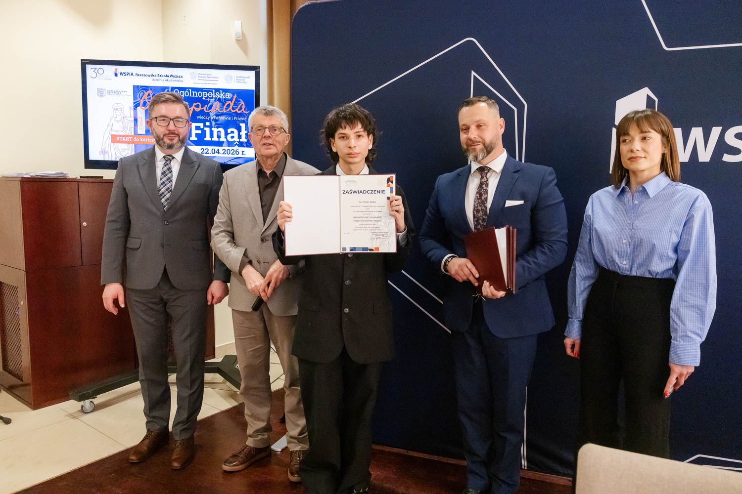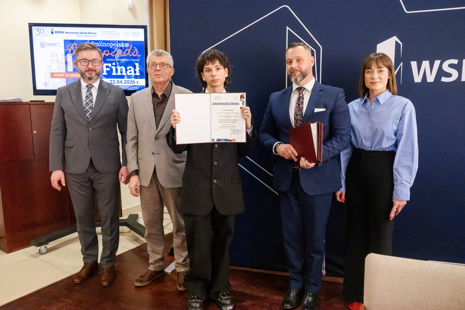 Ponad 1500 uczestników, trzy etapy rywalizacji i tylko piątka laureatów. 22 kwietnia 2026 r. w WSPiA Rzeszowskiej Szkole Wyższej rozstrzygnął się finał Ogólnopolskiej Olimpiady Wiedzy o Państwie i Prawie – jednego z najważniejszych konkursów prawniczych dla młodzieży w Polsce. Na starcie stanęło 30 najlepszych uczniów w Polsce. Tylko kilku jednak sięgnęło po najwyższe laury.