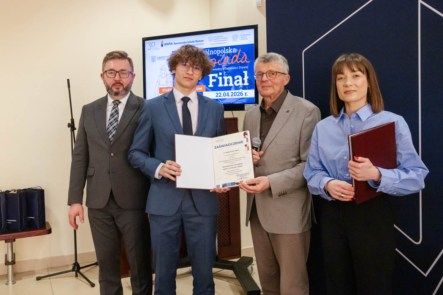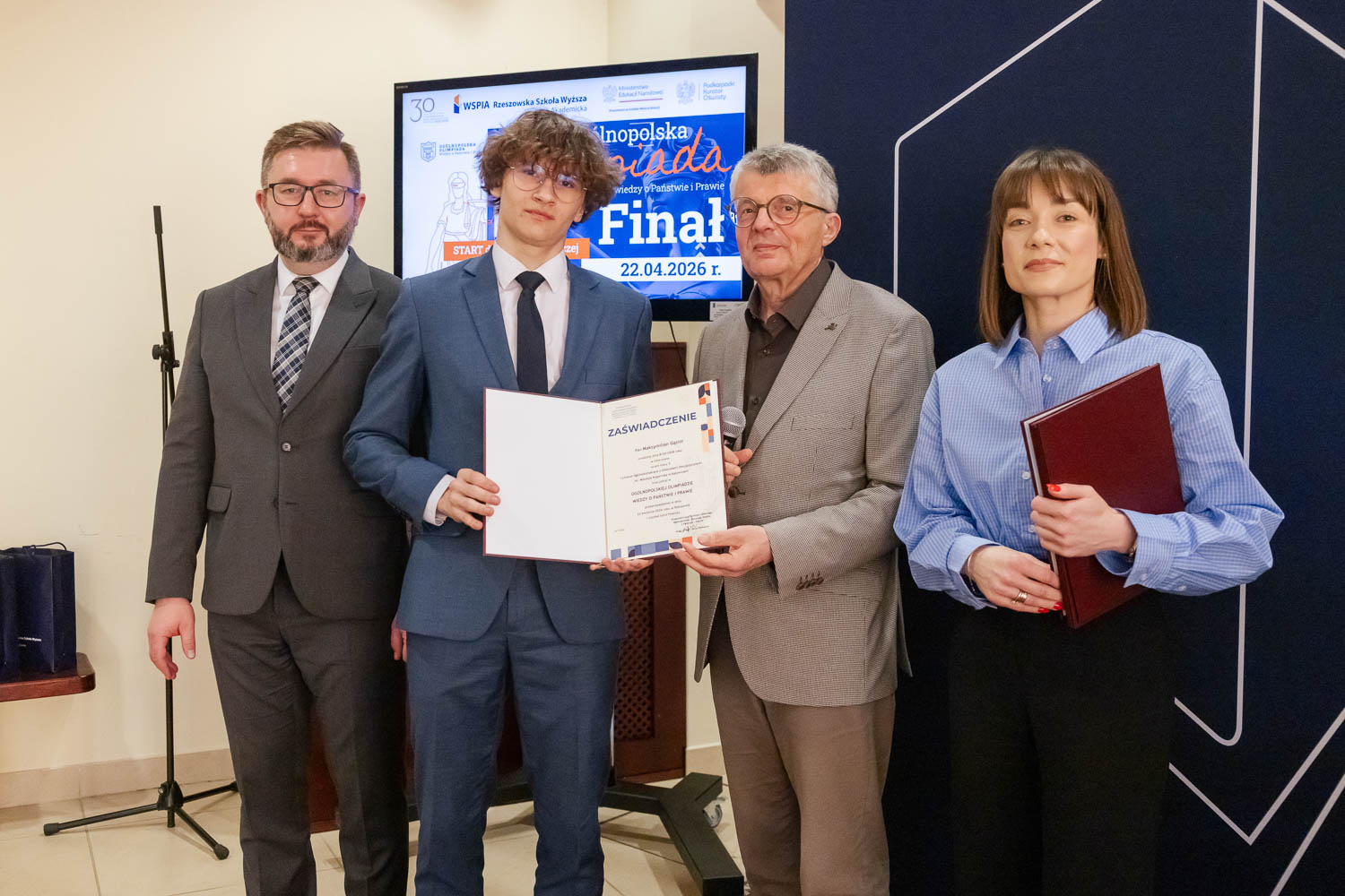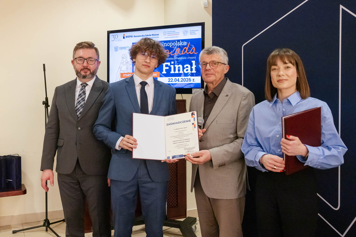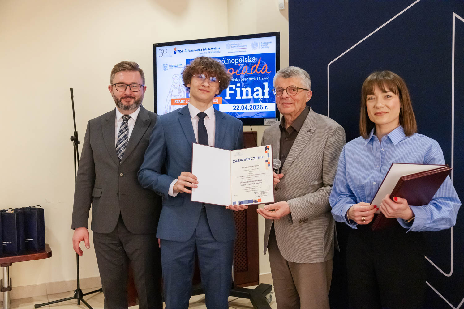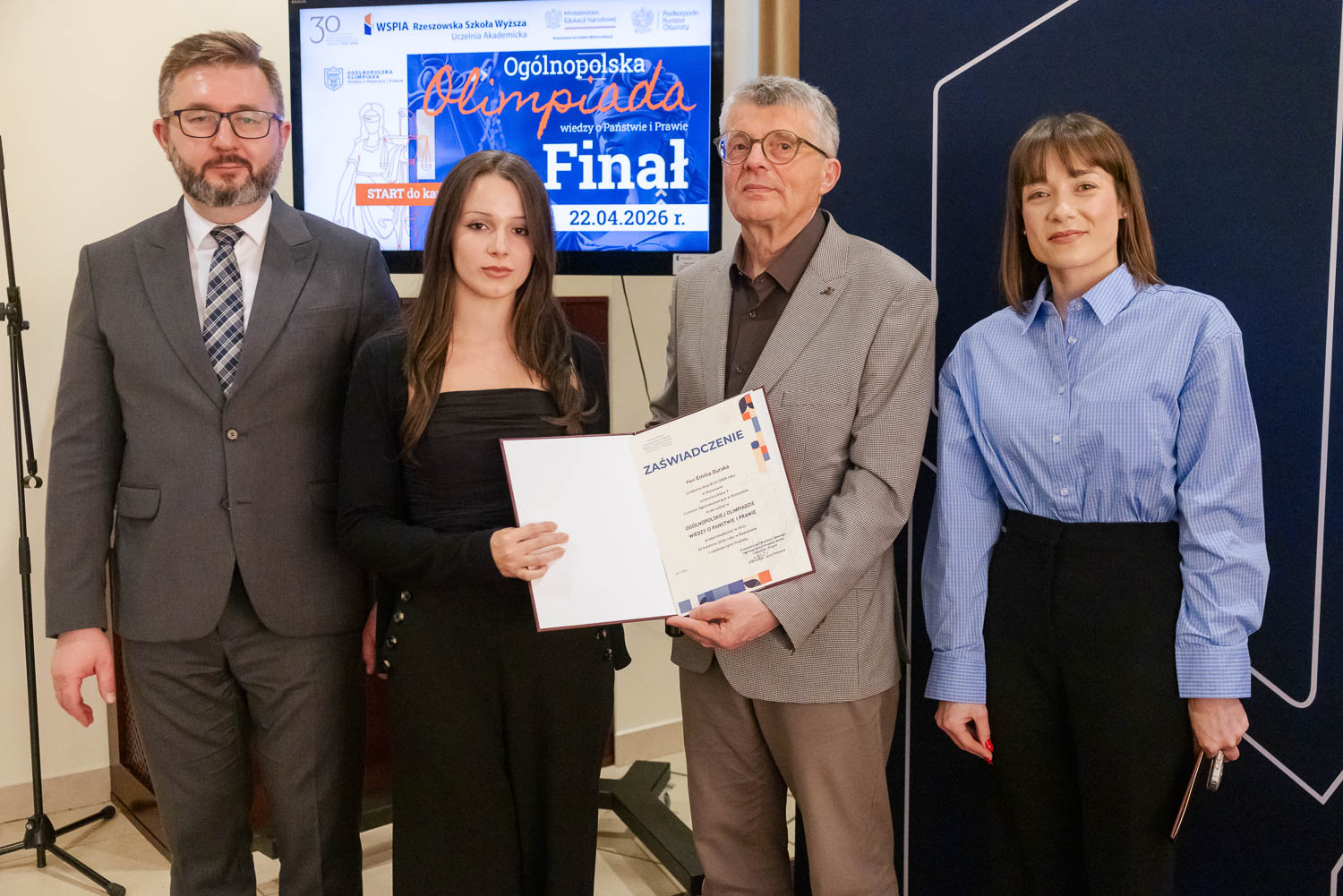 Ponad 1500 uczestników, trzy etapy rywalizacji i tylko piątka laureatów. 22 kwietnia 2026 r. w WSPiA Rzeszowskiej Szkole Wyższej rozstrzygnął się finał Ogólnopolskiej Olimpiady Wiedzy o Państwie i Prawie – jednego z najważniejszych konkursów prawniczych dla młodzieży w Polsce. Na starcie stanęło 30 najlepszych uczniów w Polsce. Tylko kilku jednak sięgnęło po najwyższe laury.
