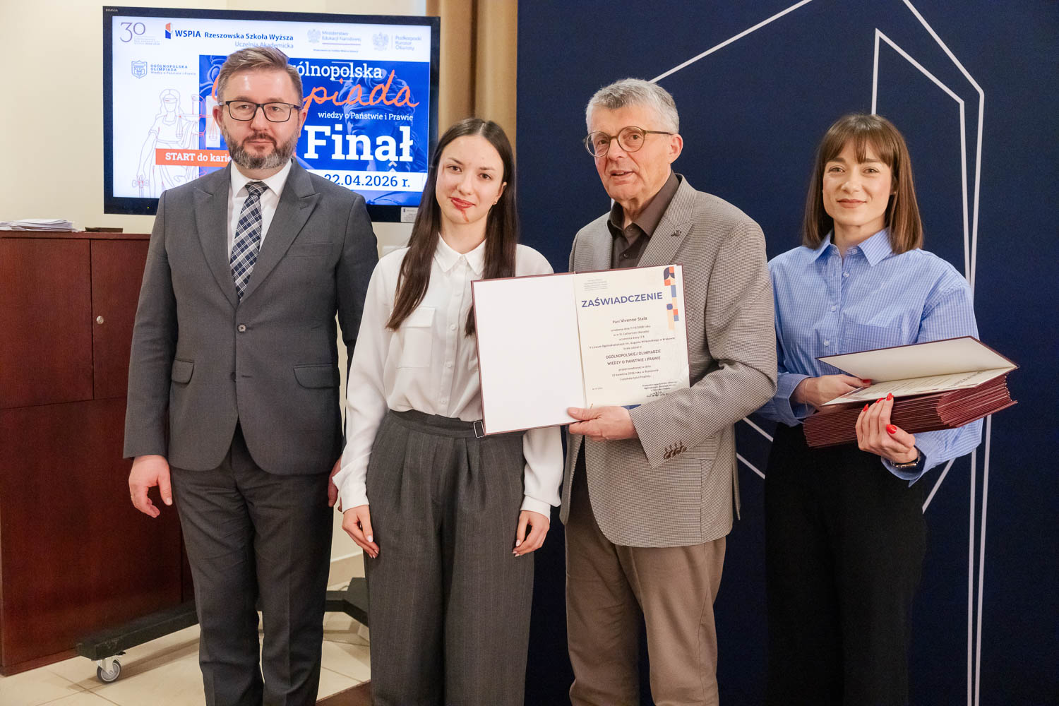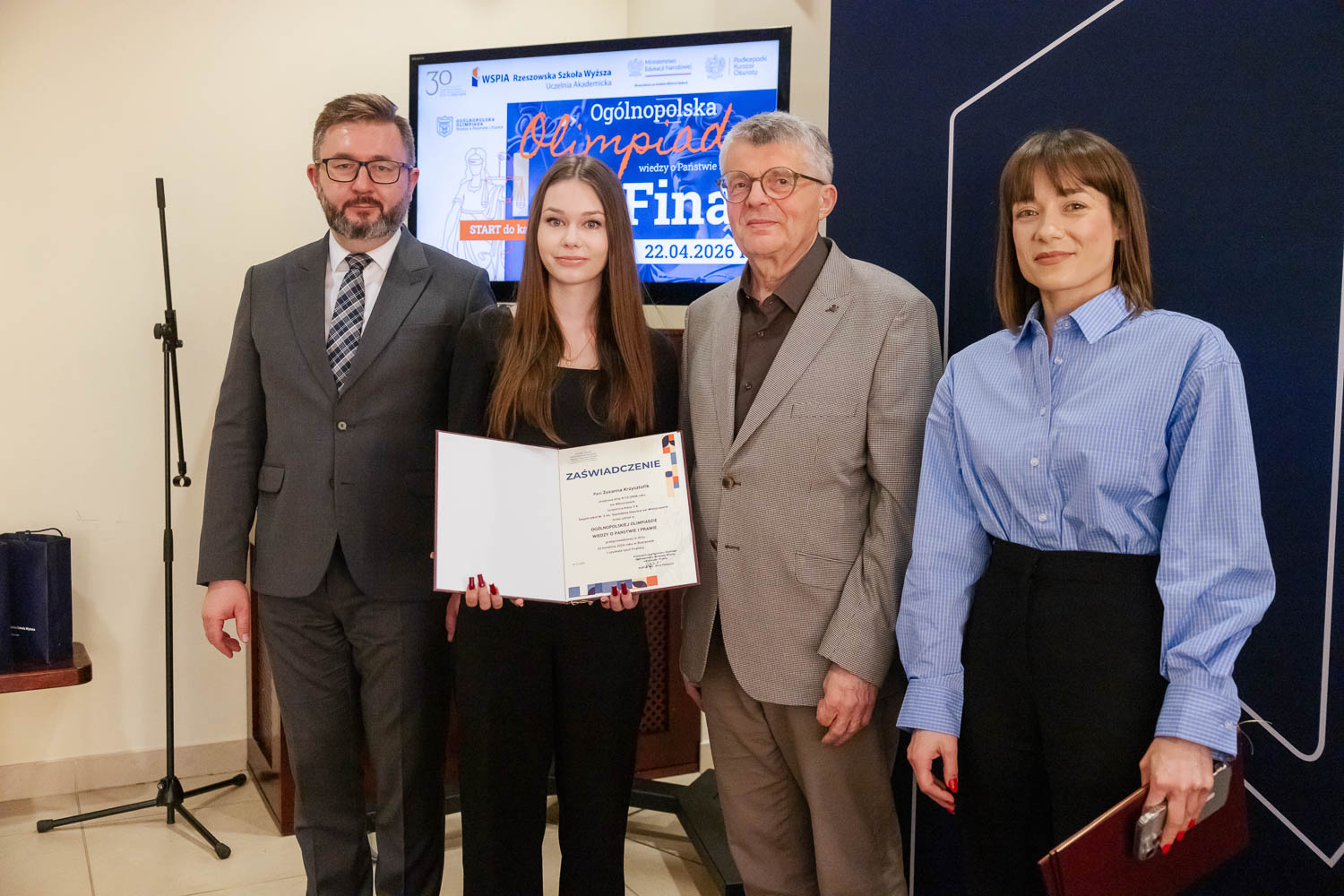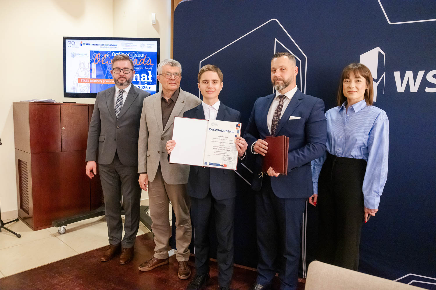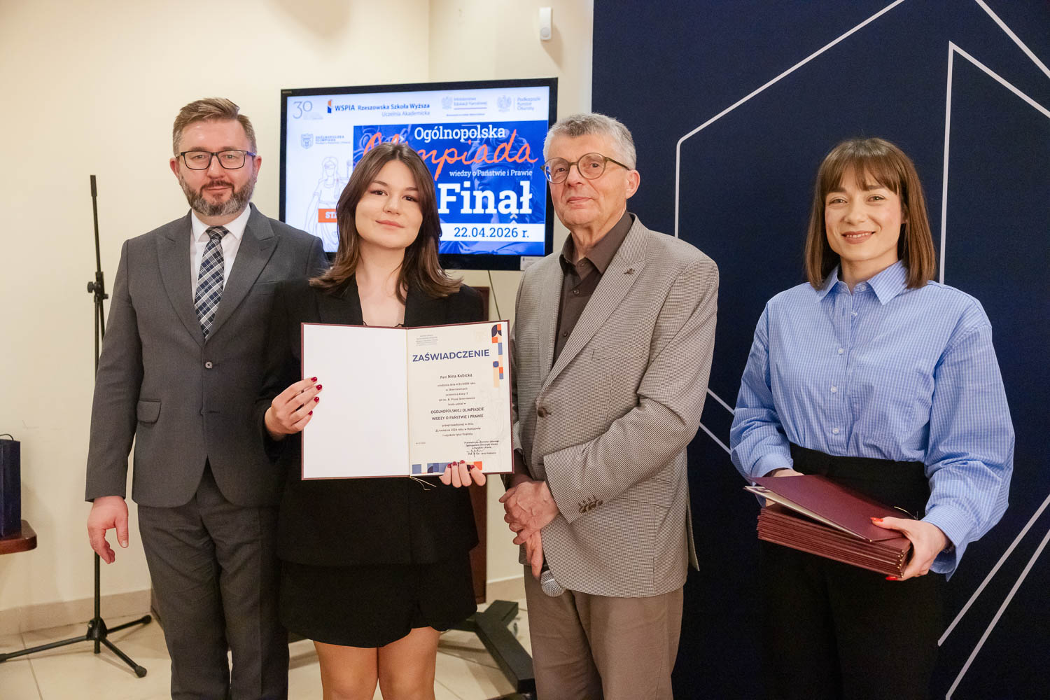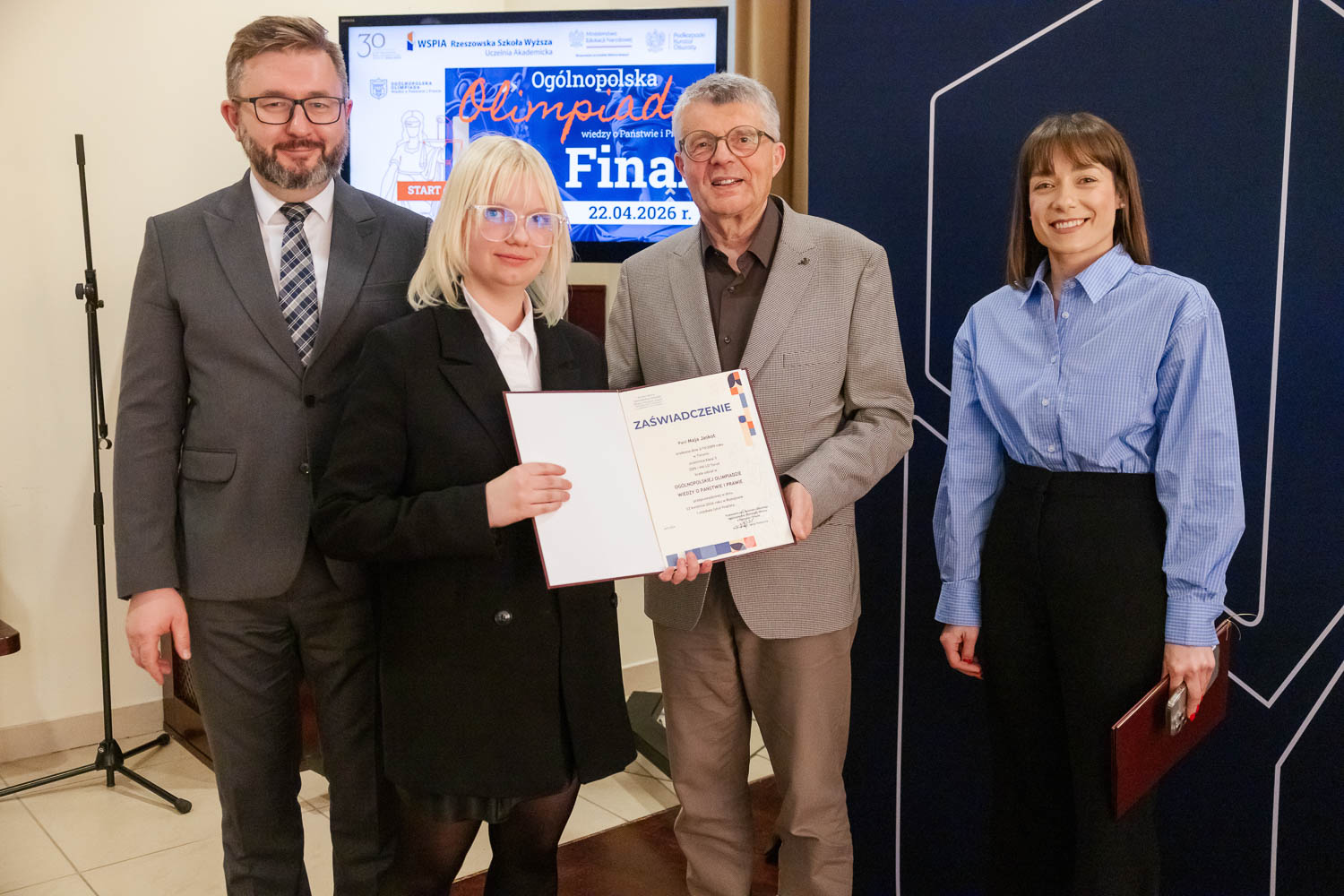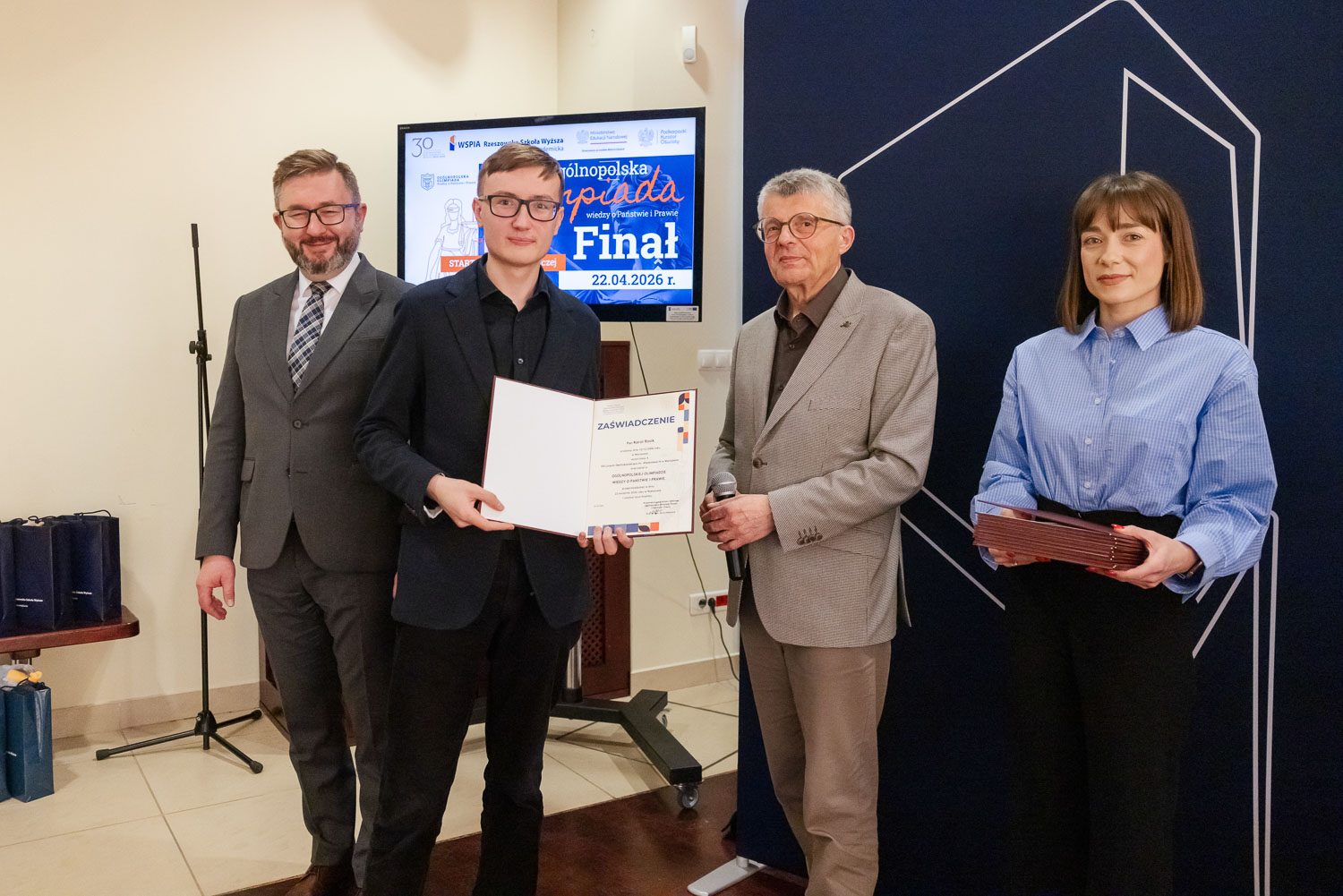 Ponad 1500 uczestników, trzy etapy rywalizacji i tylko piątka laureatów. 22 kwietnia 2026 r. w WSPiA Rzeszowskiej Szkole Wyższej rozstrzygnął się finał Ogólnopolskiej Olimpiady Wiedzy o Państwie i Prawie – jednego z najważniejszych konkursów prawniczych dla młodzieży w Polsce. Na starcie stanęło 30 najlepszych uczniów w Polsce. Tylko kilku jednak sięgnęło po najwyższe laury.
