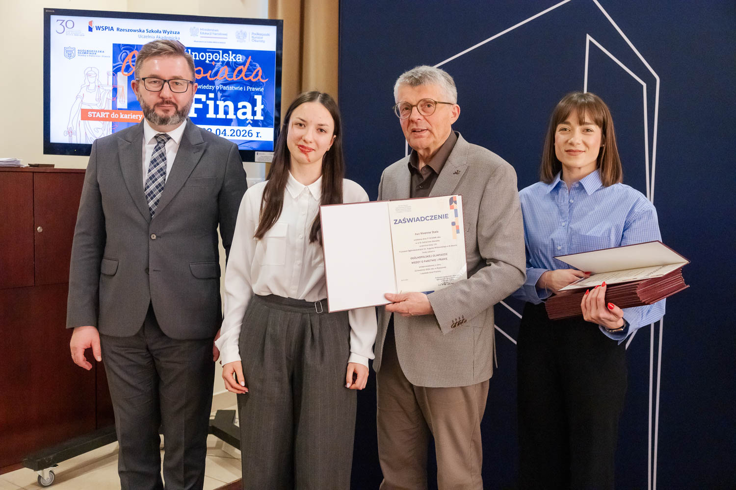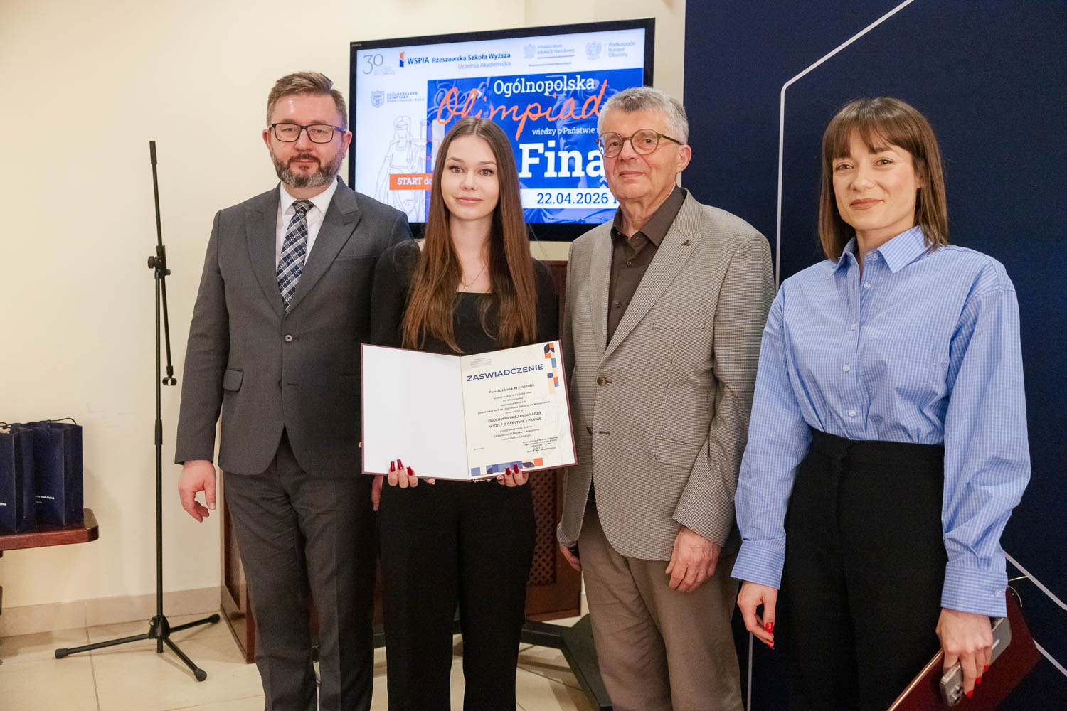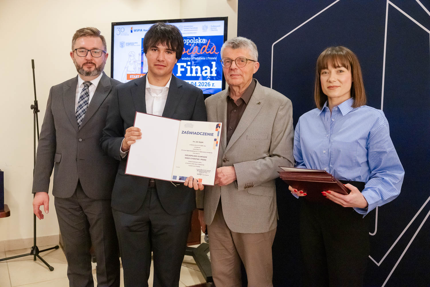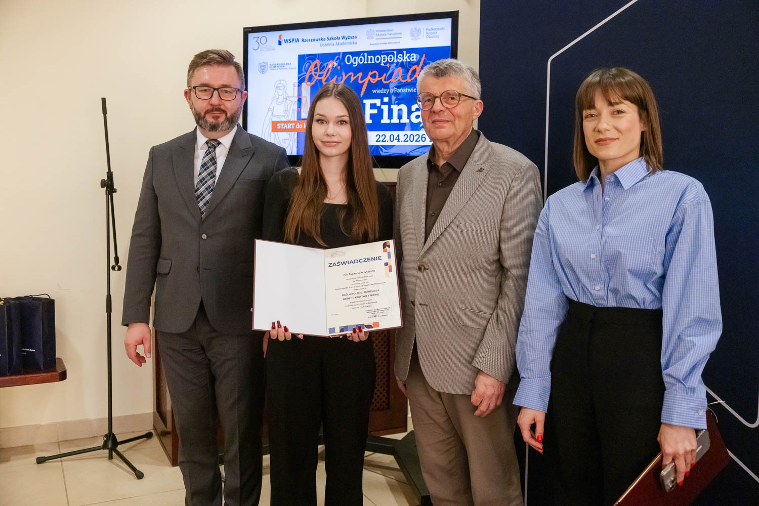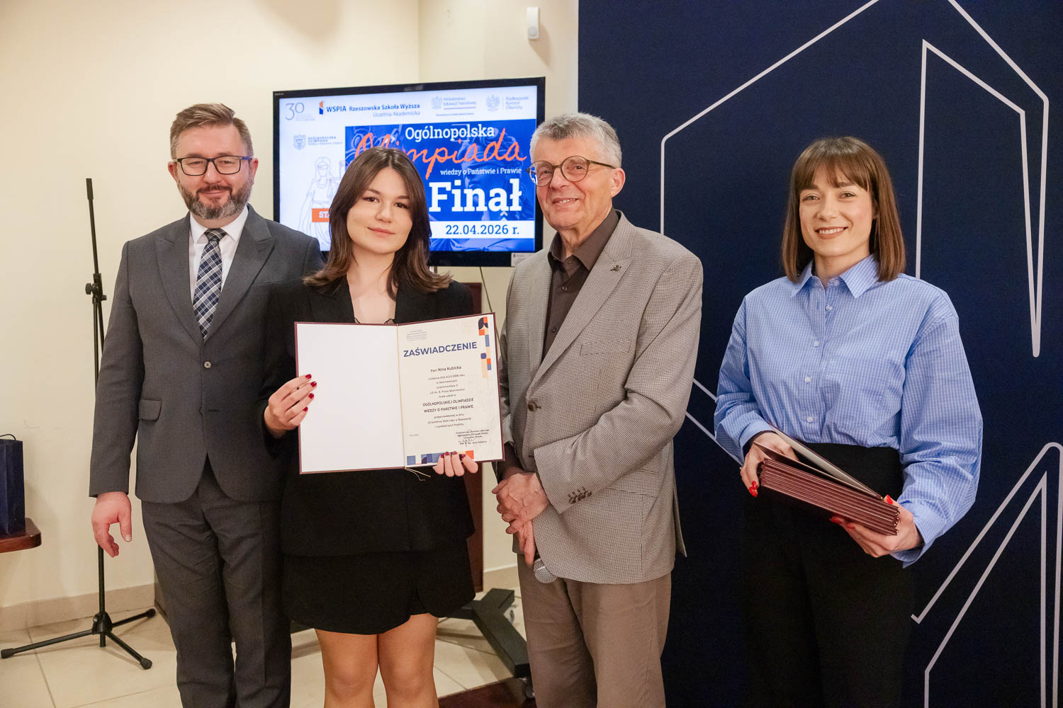 Ponad 1500 uczestników, trzy etapy rywalizacji i tylko piątka laureatów. 22 kwietnia 2026 r. w WSPiA Rzeszowskiej Szkole Wyższej rozstrzygnął się finał Ogólnopolskiej Olimpiady Wiedzy o Państwie i Prawie – jednego z najważniejszych konkursów prawniczych dla młodzieży w Polsce. Na starcie stanęło 30 najlepszych uczniów w Polsce. Tylko kilku jednak sięgnęło po najwyższe laury.
