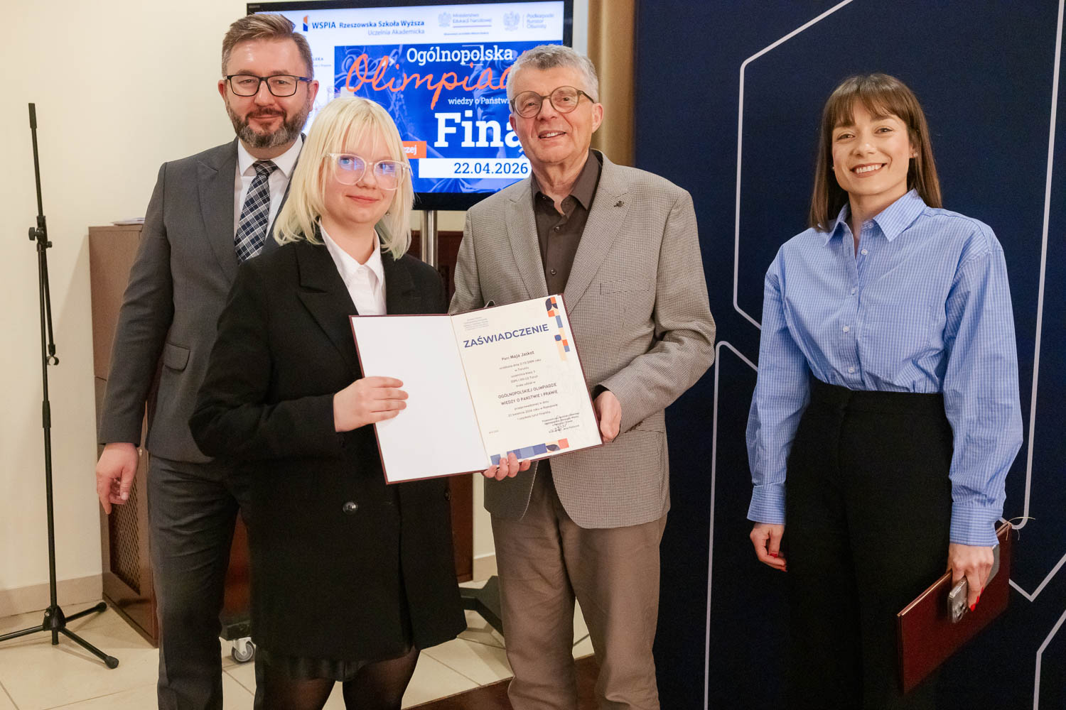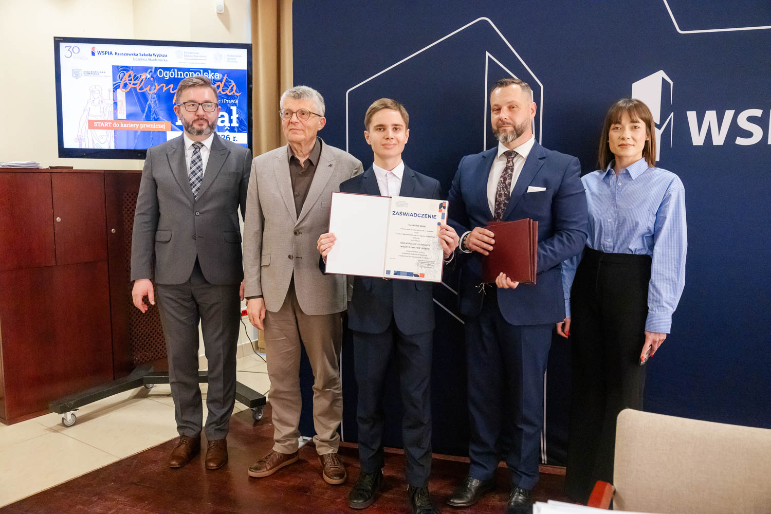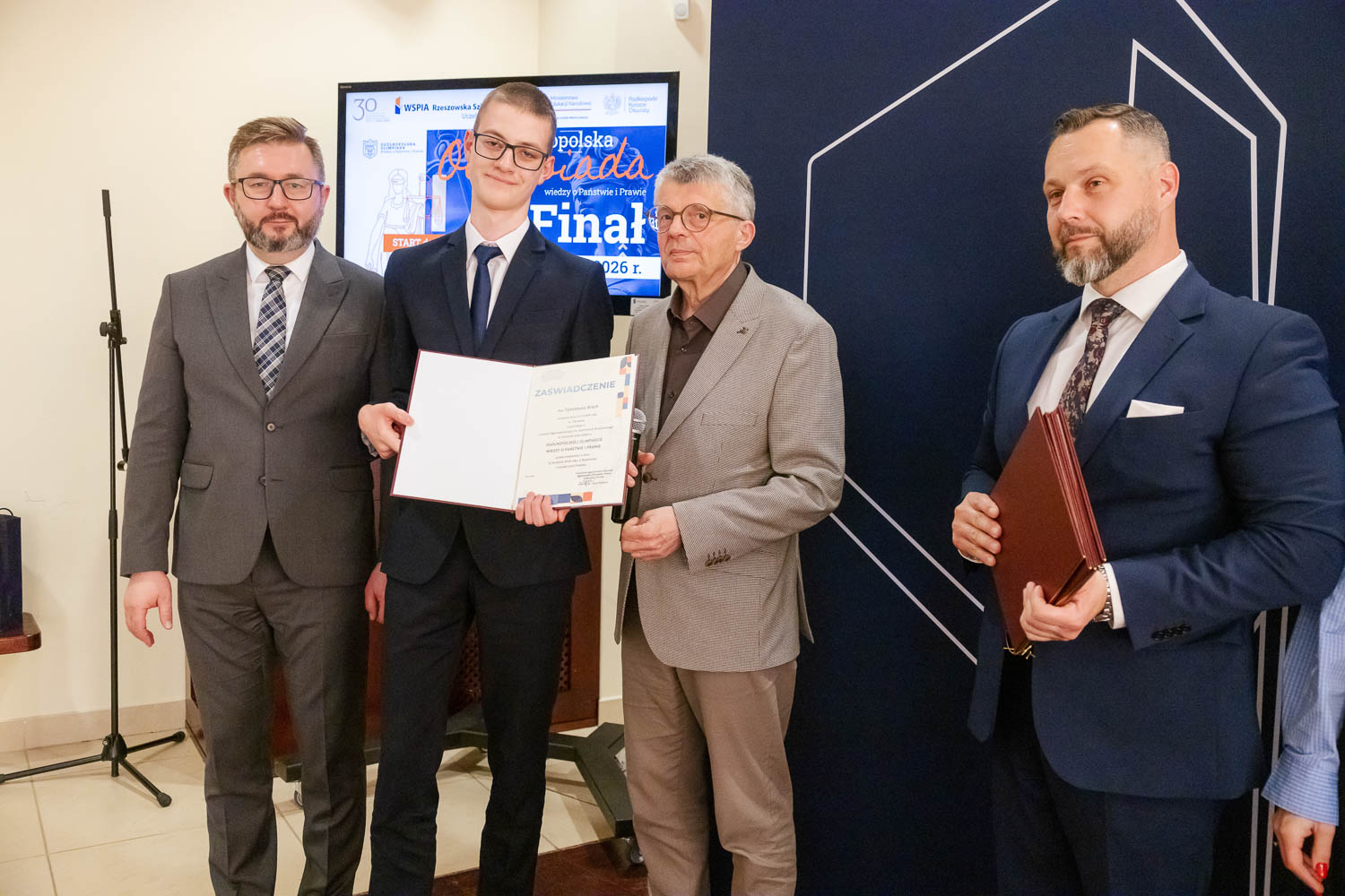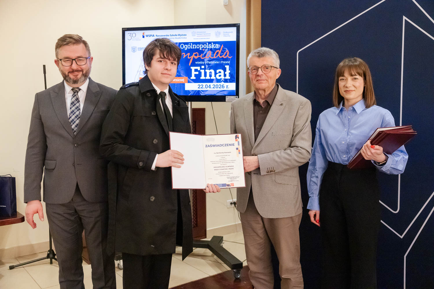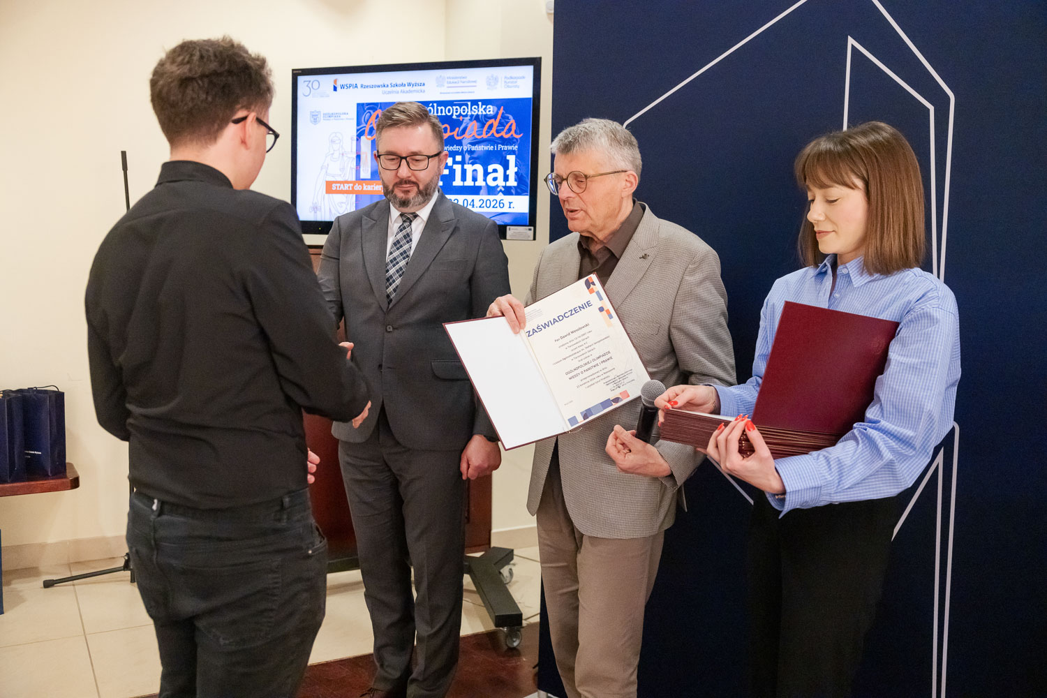 Ponad 1500 uczestników, trzy etapy rywalizacji i tylko piątka laureatów. 22 kwietnia 2026 r. w WSPiA Rzeszowskiej Szkole Wyższej rozstrzygnął się finał Ogólnopolskiej Olimpiady Wiedzy o Państwie i Prawie – jednego z najważniejszych konkursów prawniczych dla młodzieży w Polsce. Na starcie stanęło 30 najlepszych uczniów w Polsce. Tylko kilku jednak sięgnęło po najwyższe laury.