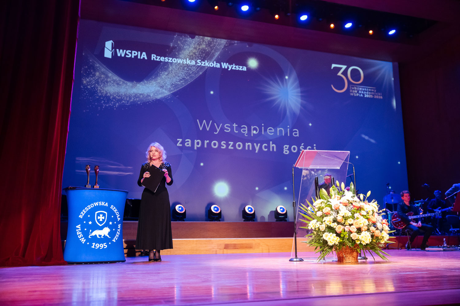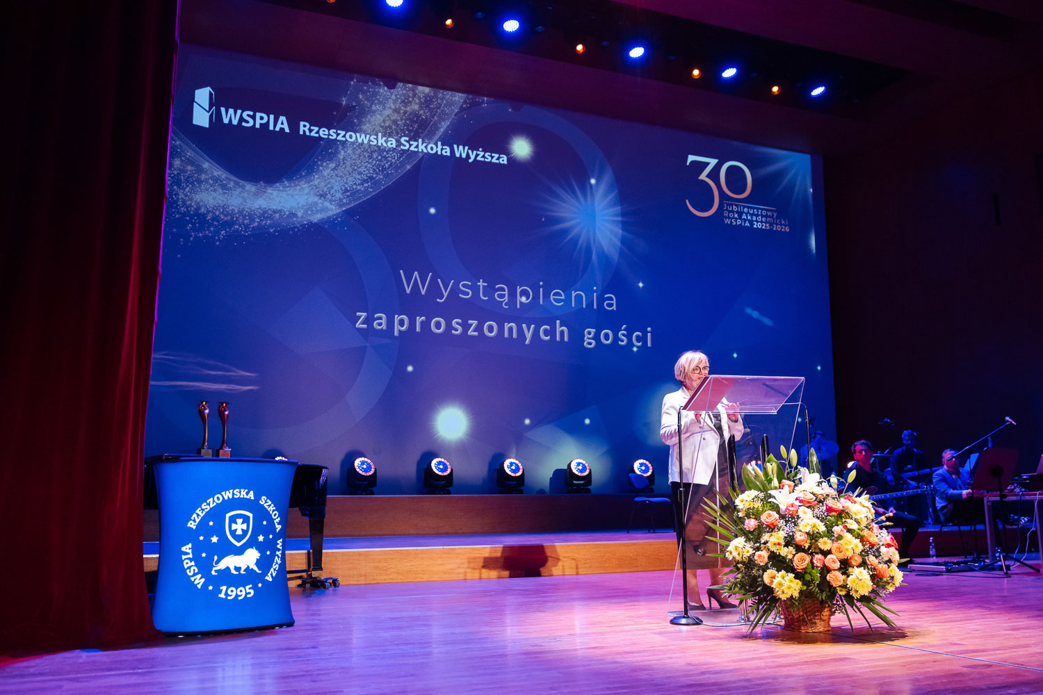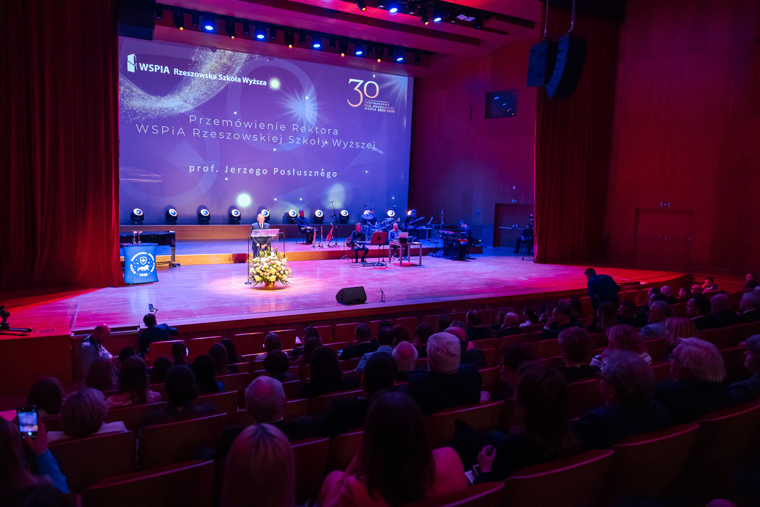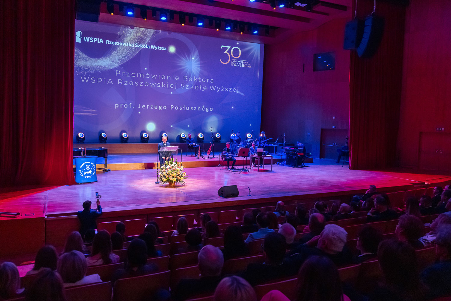 Szanowni Państwo, cóż to był za wieczór! Gala Jubileuszowa WSPiA Rzeszowskiej Szkoły Wyższej zgromadziła przedstawicieli świata nauki, polityki oraz sympatyków i pracowników Uczelni – ludzi, którzy przez lata współtworzyli jej akademicką wspólnotę. Trzy dekady historii spotkały się tego wieczoru w jednej sali, na jednej scenie, splatając się w opowieść o miejscu budującym swoją tożsamość na fundamencie niezwykłych początków. Wydarzeniu towarzyszyły finezyjna muzyka, belferska poezja Ignacego Krasickiego oraz wspomnienia, których czar wypełnił całą Filharmonię Podkarpacką.