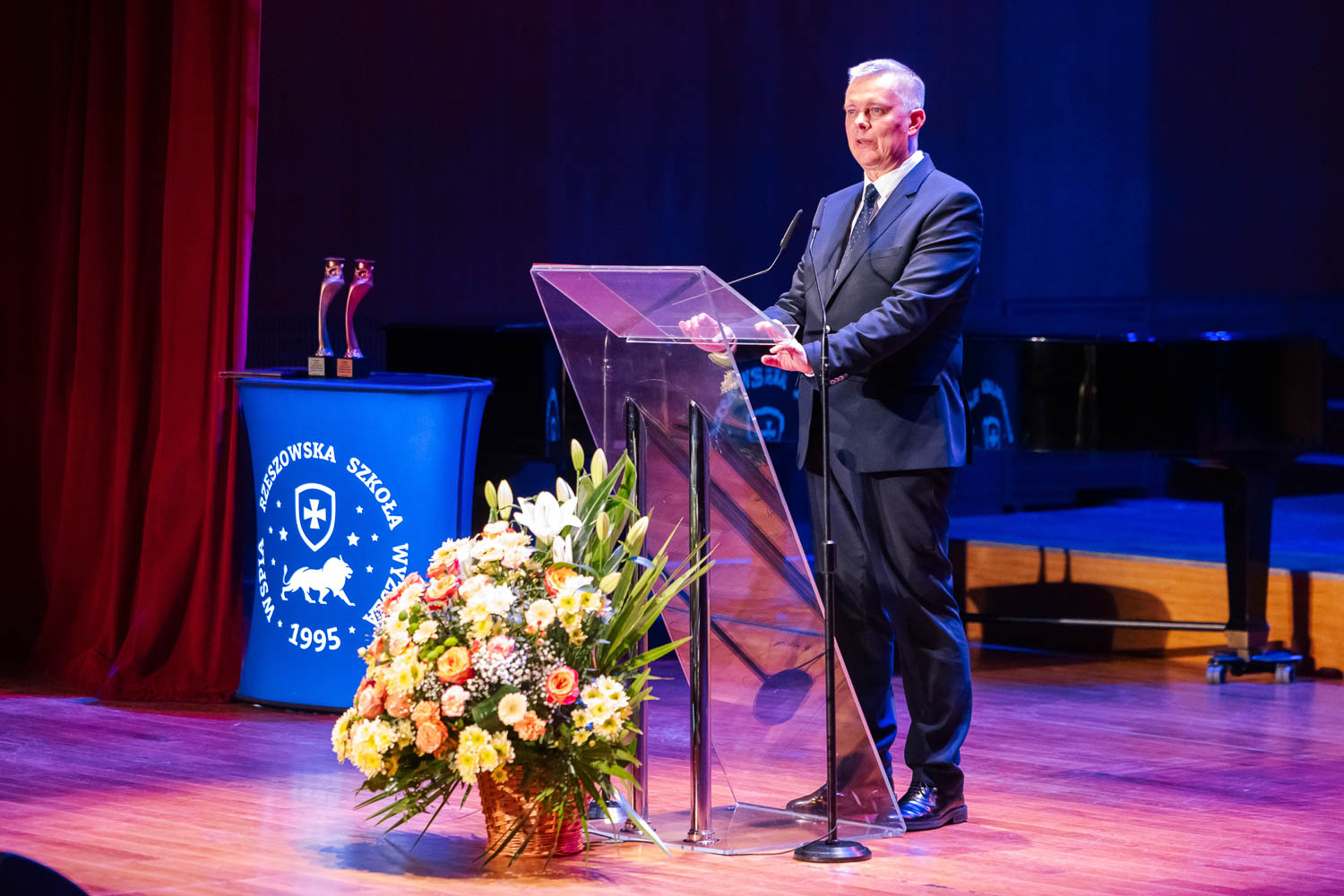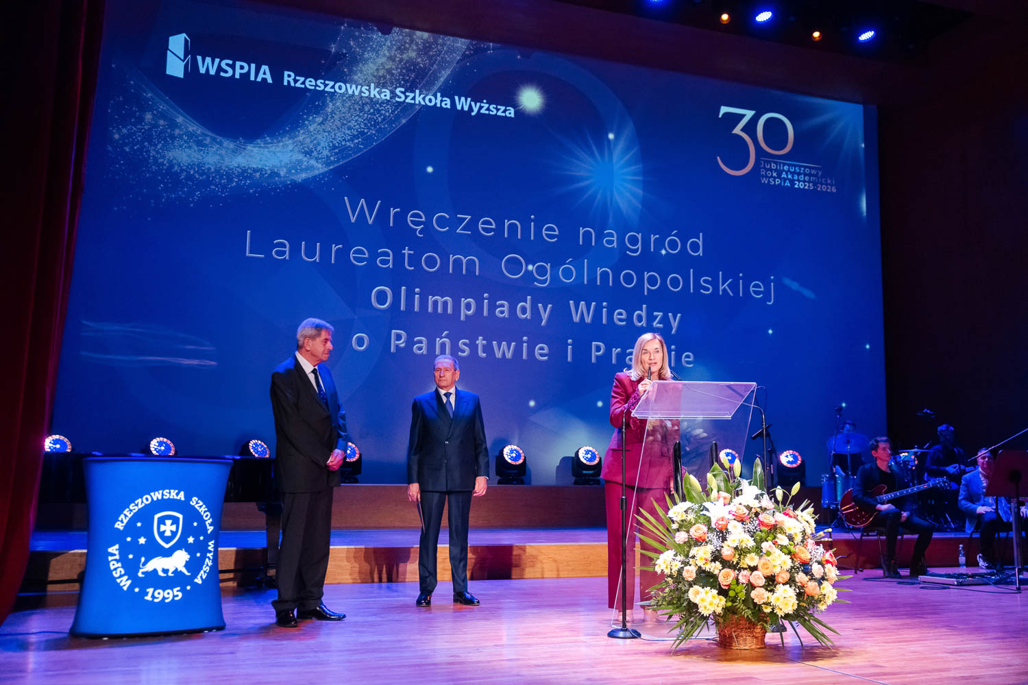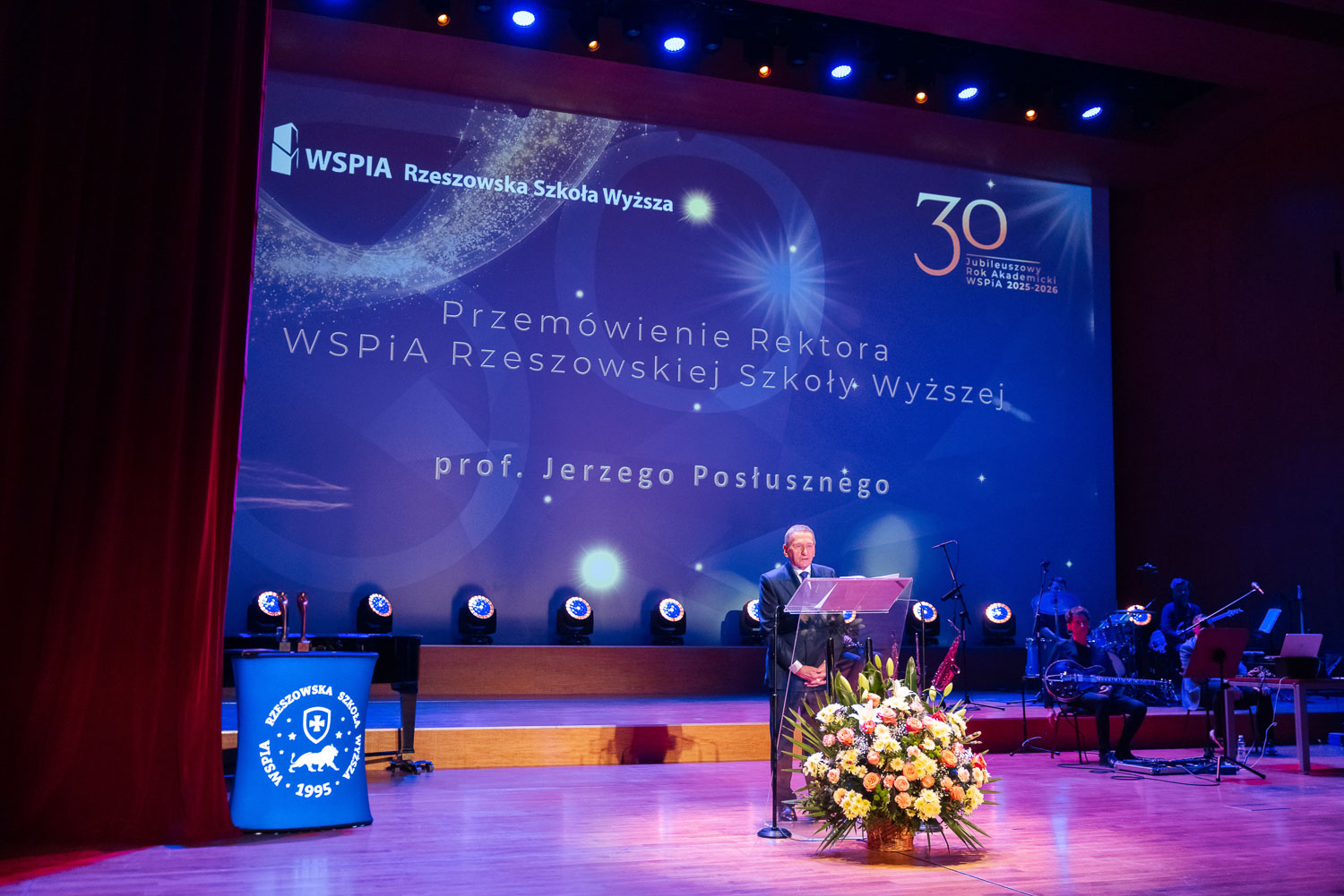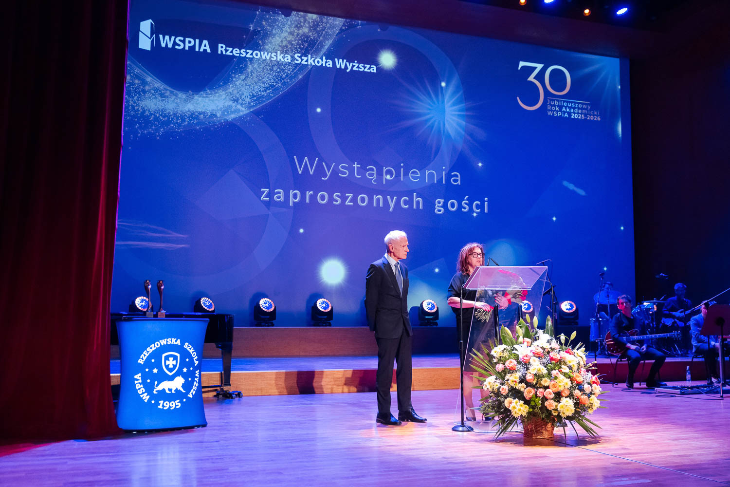 Szanowni Państwo, cóż to był za wieczór! Gala Jubileuszowa WSPiA Rzeszowskiej Szkoły Wyższej zgromadziła przedstawicieli świata nauki, polityki oraz sympatyków i pracowników Uczelni – ludzi, którzy przez lata współtworzyli jej akademicką wspólnotę. Trzy dekady historii spotkały się tego wieczoru w jednej sali, na jednej scenie, splatając się w opowieść o miejscu budującym swoją tożsamość na fundamencie niezwykłych początków. Wydarzeniu towarzyszyły finezyjna muzyka, belferska poezja Ignacego Krasickiego oraz wspomnienia, których czar wypełnił całą Filharmonię Podkarpacką.